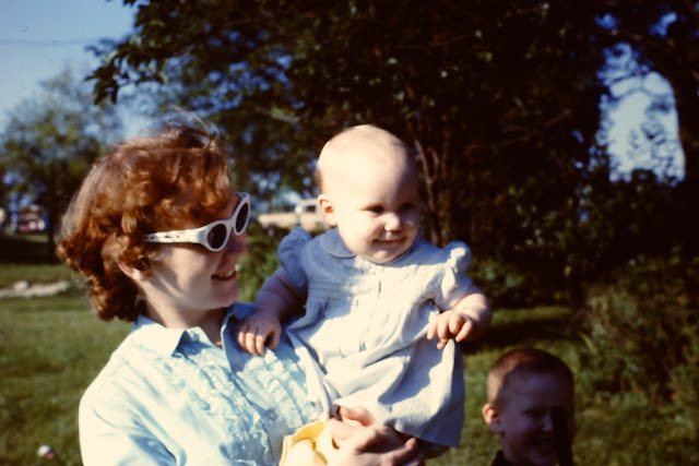 This is my mom and I. I just wanted to show off what a fashionista she was even with 5 kids and 2 more down the road. I really wish she'd hung onto those sunglasses. I would so steal them from her if they were still around.