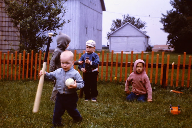 My brother Tom. Bats and toy weapons were an integral part of these wild boys' life, thus the black eyes.